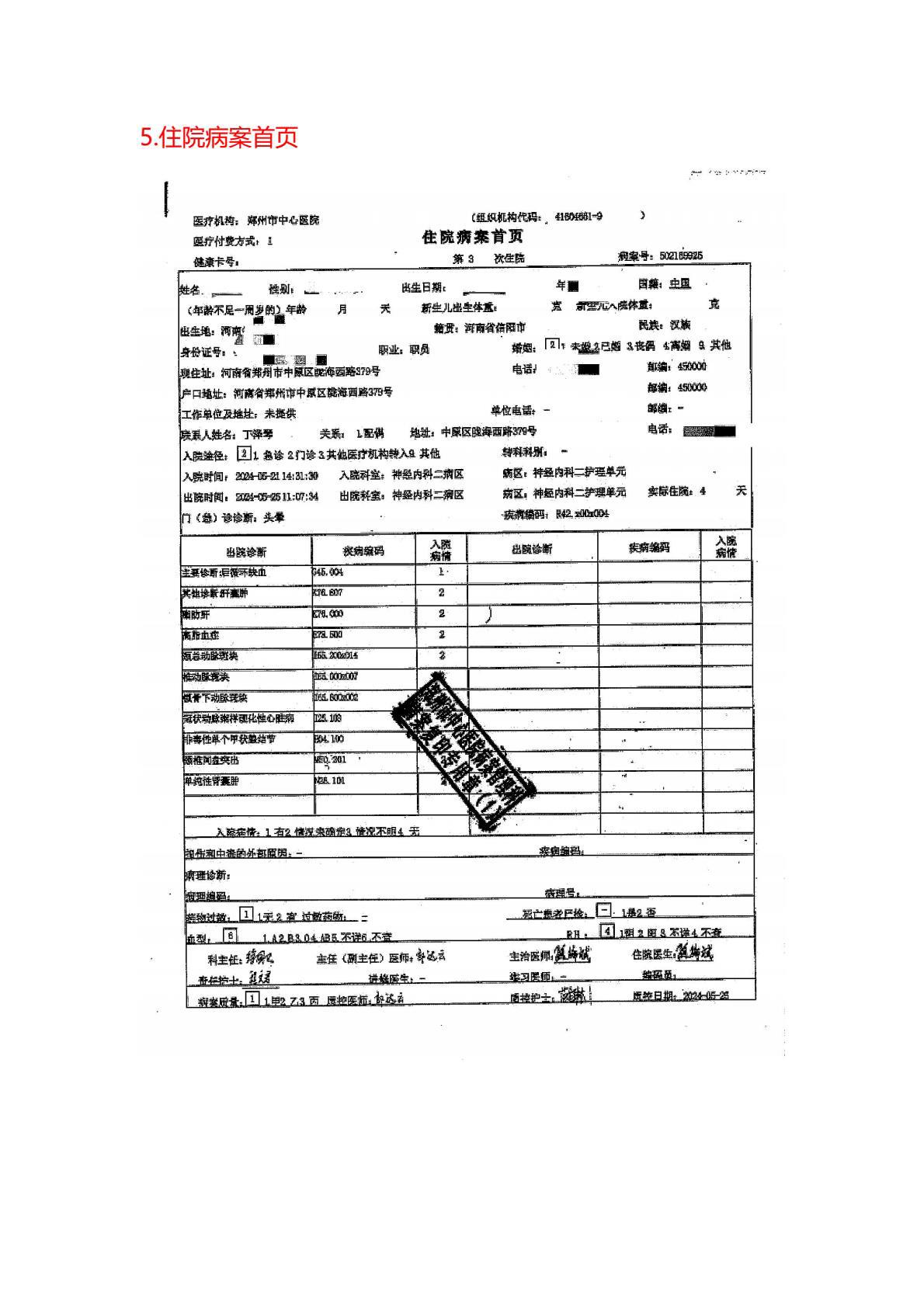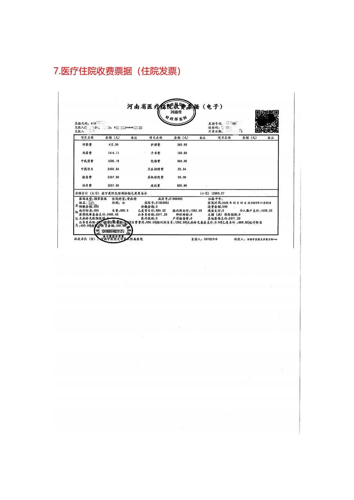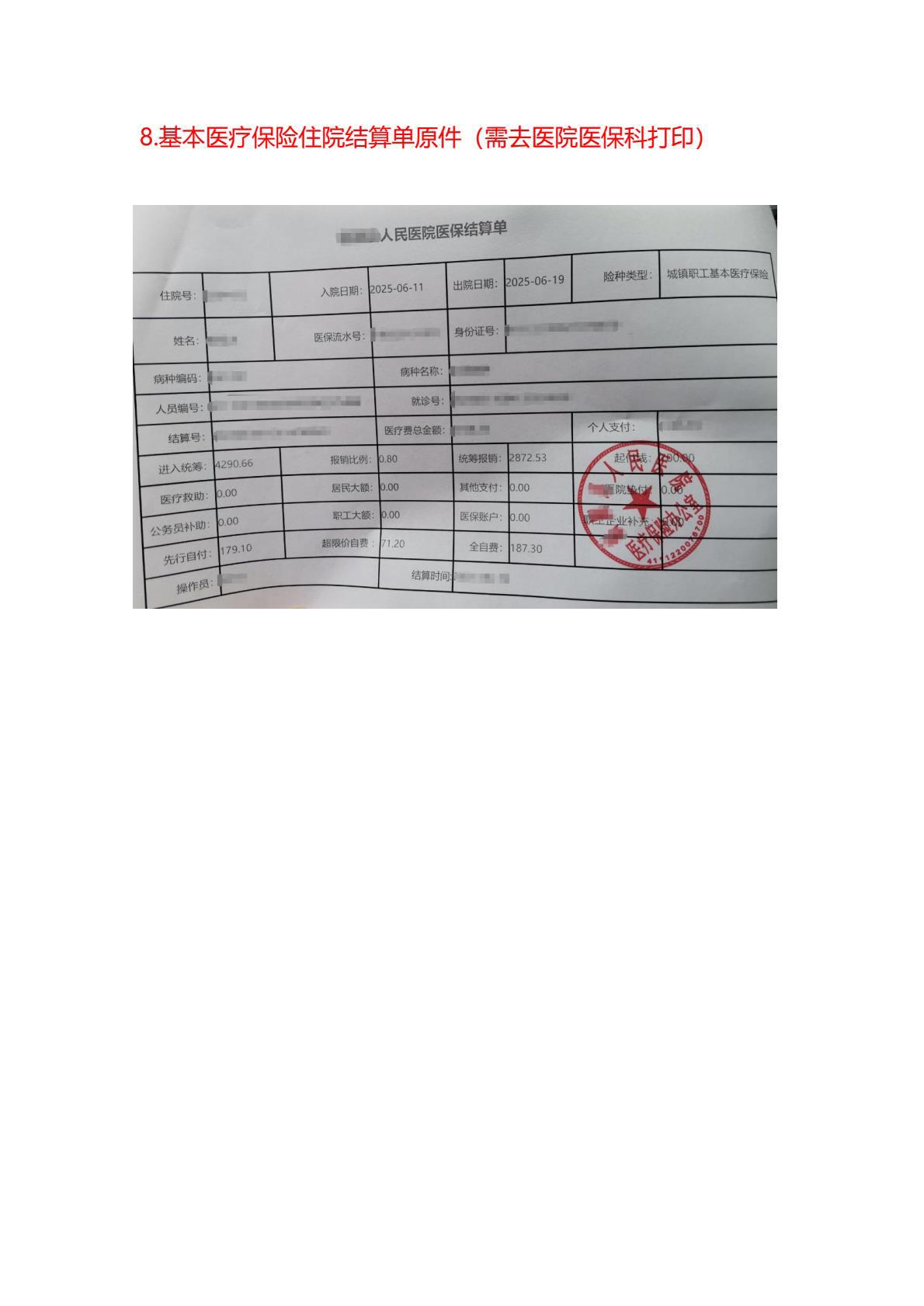 (金额3000以上需提供)住院医疗纸质资料示例图